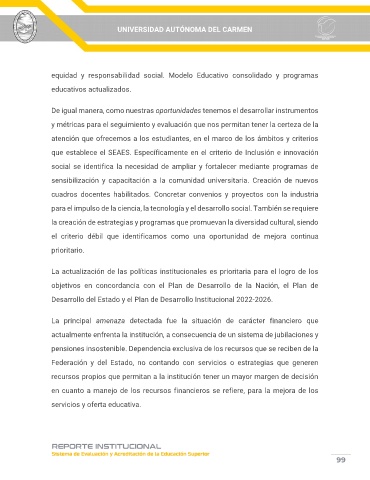 equidad y responsabilidad social. Modelo Educativo consolidado y programas