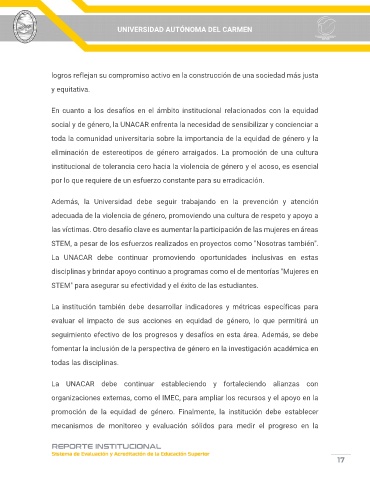 promoción de la equidad de género. Finalmente, la institución debe establecer