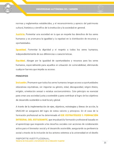 UNACAR se asegurará del logro de estos valores y principios. En el caso de la
