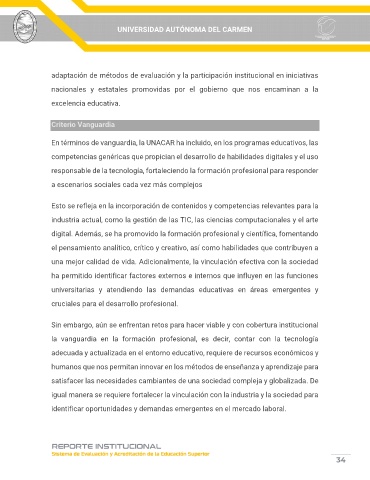 En términos de vanguardia, la UNACAR ha incluido, en los programas educativos, las