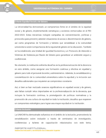promoción de una cultura de equidad en toda la institución; desafíos que requieren