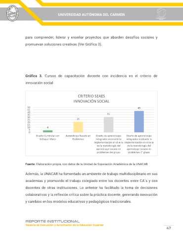 Además, la UNACAR ha fomentado un ambiente de trabajo multidisciplinario en sus
