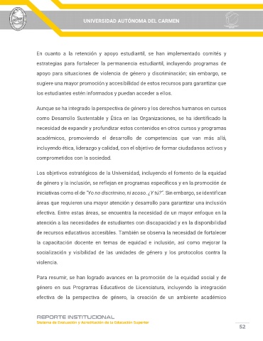 Los objetivos estratégicos de la Universidad, incluyendo el fomento de la equidad