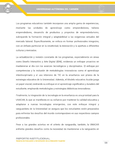 UNACAR, lo que se manifiesta en su esfuerzo por mantener la calidad educativa y