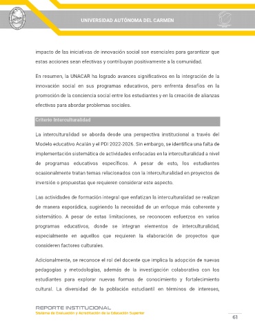 innovación social en sus programas educativos, pero enfrenta desafíos en la