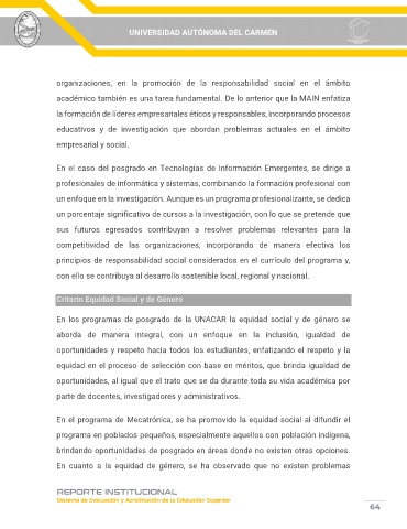 En los programas de posgrado de la UNACAR la equidad social y de género se