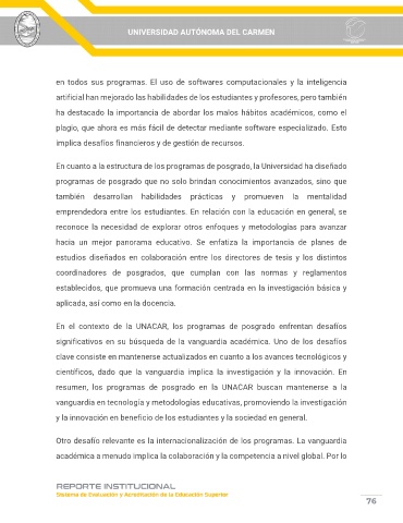 resumen, los programas de posgrado en la UNACAR buscan mantenerse a la