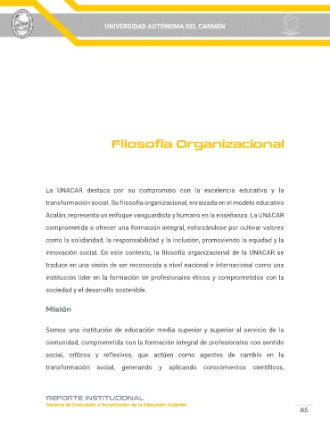 innovación social. En este contexto, la filosofía organizacional de la UNACAR se