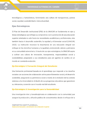 El Plan de Desarrollo Institucional (PDI) de la UNACAR se fundamenta en ejes y