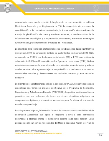 En el ámbito de la profesionalización de la docencia, la UNACAR desarrolla acciones